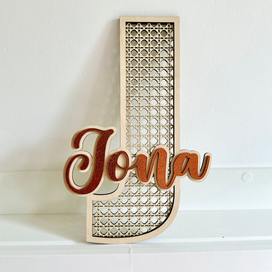 Article en bois de bouleau résistant 3mm. Prénom en bois mdf plaqué blanc ou plexiglass coloré 3mm. Dimensions : Hauteur de 26 cm, largeur variable suivant la lettre et épaisseur de 0,9 cm.